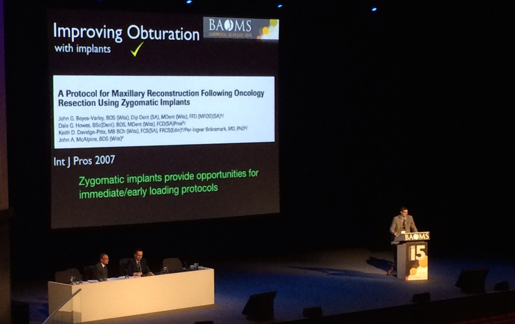 The BAOMS Annual Conference 2015 was held in Liverpool at the ACC under the presidency of Professor James Brown, one of my colleagues from the maxillofacial surgery department at University Hospital Aintree. It was a great meeting and I gave a keynote lecture entitled “The challenges of rehabilitation following maxillary & mid-face malignancy”.